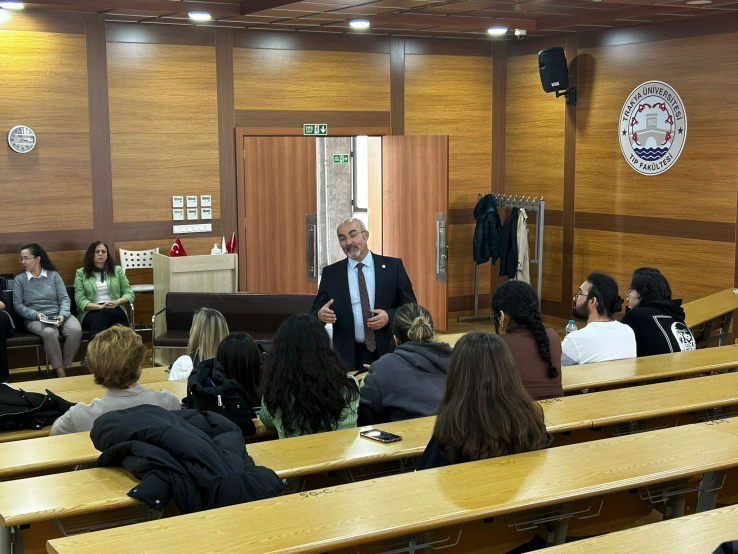 Üniversitemiz Rektör Yardımcısı ve Tıp Fakültesi Dekanı Prof. Dr. Sedat Üstündağ, Dekan Yardımcıları Prof. Dr. Derya Demirbağ Kabayel ve Prof. Dr. Fulya Öz Puyan, Ölçme ve Değerlendirme Birimi Başkanı Prof. Dr. Selma Süer Gökmen, Başkoordinatör Prof. Dr. Yeter Topçu Tarladaçalışır, 3. Sınıf Koordinatörü Prof. Dr. Ebru Taştekin, Ders Kurulu Yürütme Komiteleri Başkan ve Üyeleri Dr. Ratip Kazancıgil Derslik Binasında 24 Kasım 2025 tarihinde 3. sınıf öğrencileri ile bir araya geldi. Eğitim sisteminde yapılan düzenlemelerin, sınav analiz ve istatistiklerin bahsedildiği toplantı, öğrencilerin soruları ve cevaplar ile devam etti. Toplantı iyi dileklerin belirtilmesiyle sona erdi.